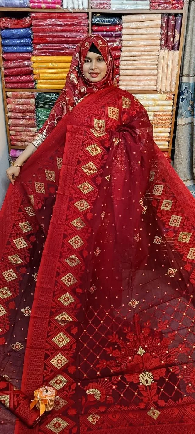ঝিলিক জামদানী শাড়ি (Red)